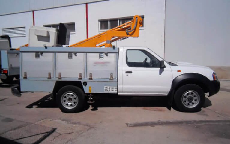 MOVEX P-9TL aerial work platform on a Nissan pick-up truck.